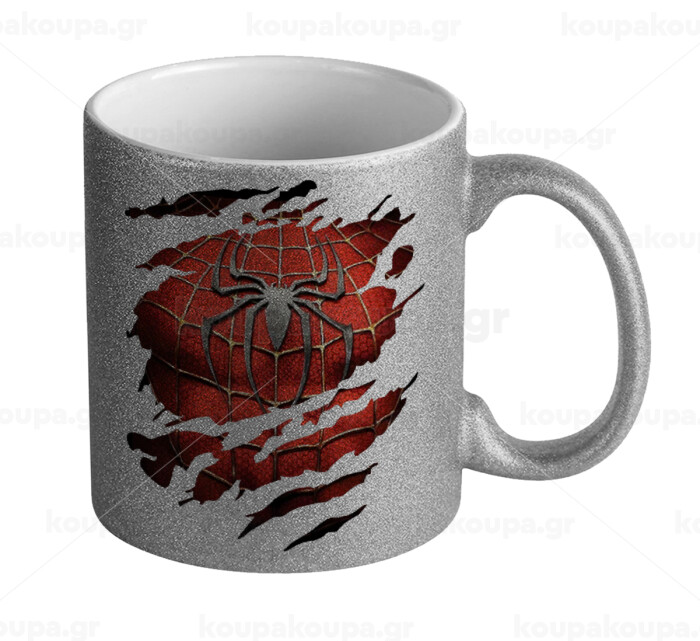 Spiderman cracked, Κούπα Ασημένια Glitter που γυαλίζει, κεραμική, 330ml