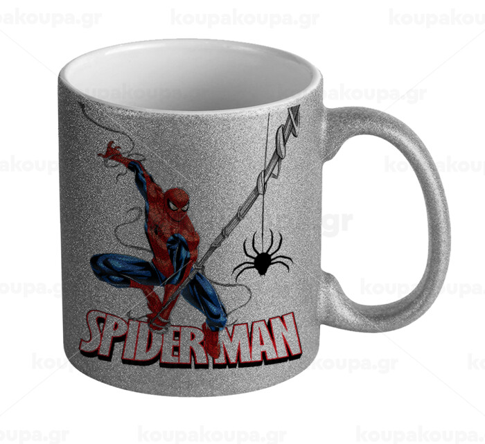 Spiderman fly, Κούπα Ασημένια Glitter που γυαλίζει, κεραμική, 330ml