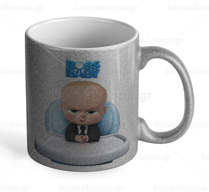 The boss baby, Κούπα Ασημένια Glitter που γυαλίζει, κεραμική, 330ml