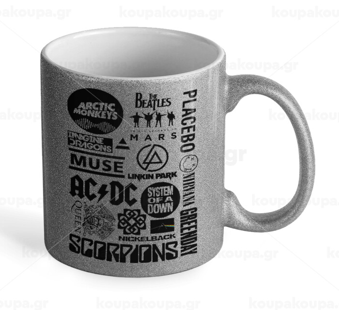 Best Rock Bands Collection, Κούπα Ασημένια Glitter που γυαλίζει, κεραμική, 330ml