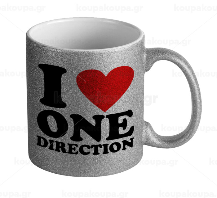 I Love, One Direction, Κούπα Ασημένια Glitter που γυαλίζει, κεραμική, 330ml