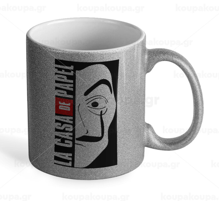 La casa de papel vertical, Κούπα Ασημένια Glitter που γυαλίζει, κεραμική, 330ml