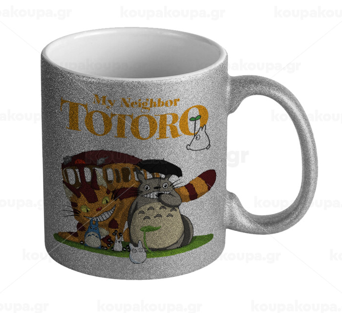 Totoro and Cat, Κούπα Ασημένια Glitter που γυαλίζει, κεραμική, 330ml