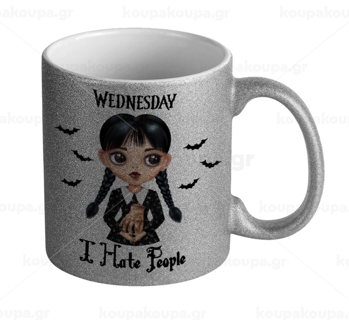 Wednesday Adams, i hate people, Κούπα Ασημένια Glitter που γυαλίζει, κεραμική, 330ml