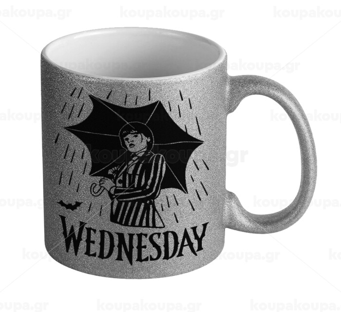 Wednesday Addams, Κούπα Ασημένια Glitter που γυαλίζει, κεραμική, 330ml