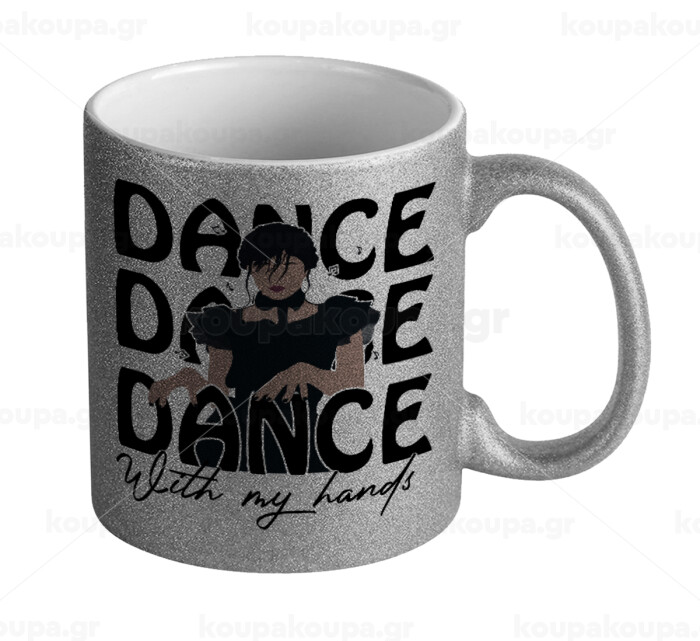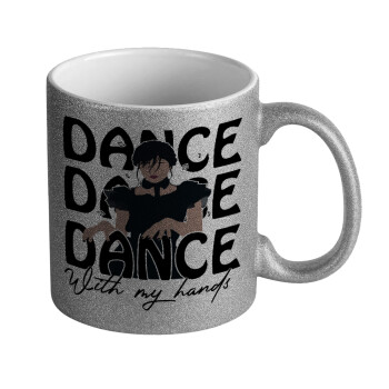 Wednesday dance dance dance, Κούπα Ασημένια Glitter που γυαλίζει, κεραμική, 330ml