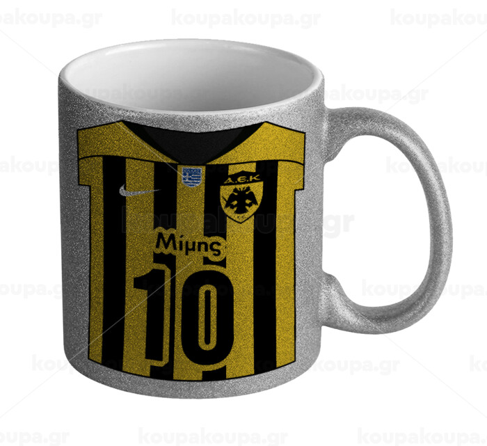 ΑΕΚ εμφάνιση, Κούπα Ασημένια Glitter που γυαλίζει, κεραμική, 330ml