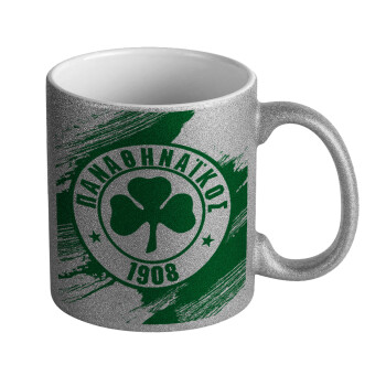 Π.Α.Ο., Κούπα Ασημένια Glitter που γυαλίζει, κεραμική, 330ml