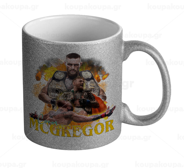 Conor McGregor Notorious, Κούπα Ασημένια Glitter που γυαλίζει, κεραμική, 330ml