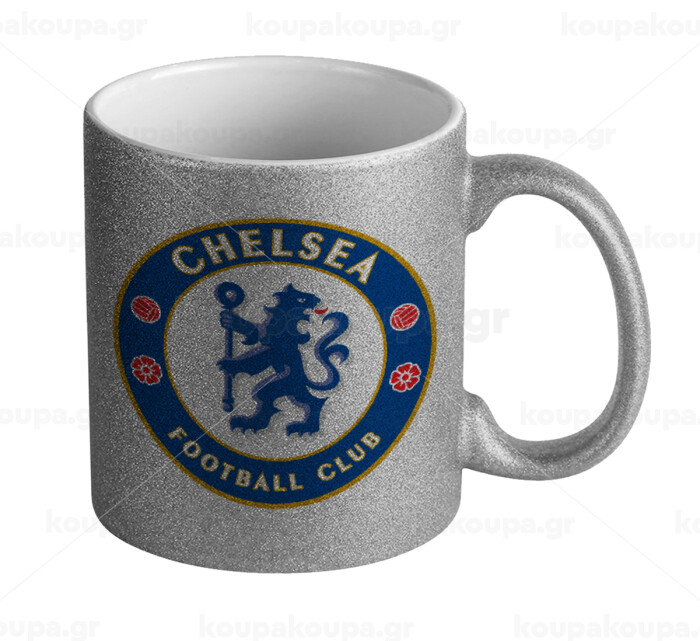 FC Chelsea, Κούπα Ασημένια Glitter που γυαλίζει, κεραμική, 330ml