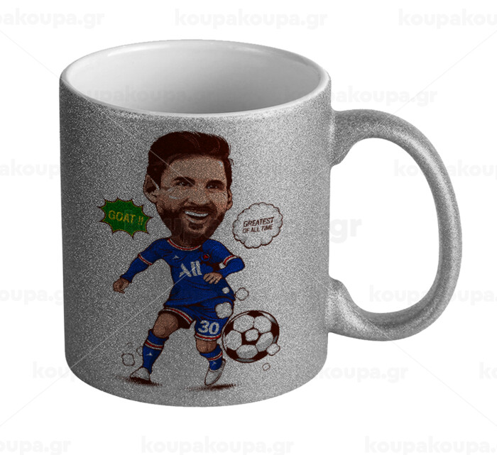 Lionel Messi drawing, Κούπα Ασημένια Glitter που γυαλίζει, κεραμική, 330ml