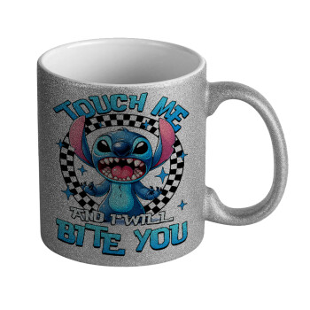 Stitch Touch Me And I Will Bite You, Κούπα Ασημένια Glitter που γυαλίζει, κεραμική, 330ml