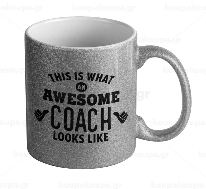 This is what an awesome COACH looks like!, Κούπα Ασημένια Glitter που γυαλίζει, κεραμική, 330ml