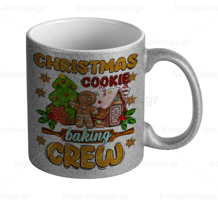 Christmas Cookie Baking Crew, Κούπα Ασημένια Glitter που γυαλίζει, κεραμική, 330ml