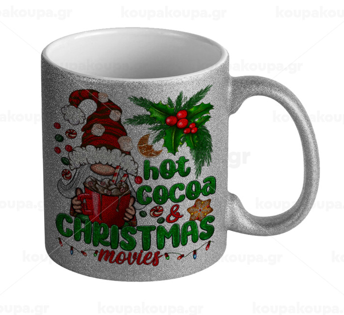 Hot cocoa and Christmas movies, Κούπα Ασημένια Glitter που γυαλίζει, κεραμική, 330ml