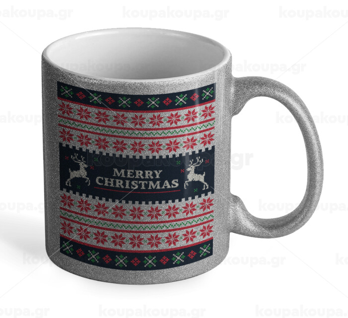 Merry Christmas Vintage, Κούπα Ασημένια Glitter που γυαλίζει, κεραμική, 330ml