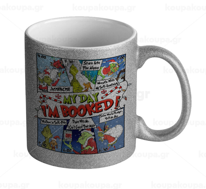 My Day Grinch, Κούπα Ασημένια Glitter που γυαλίζει, κεραμική, 330ml