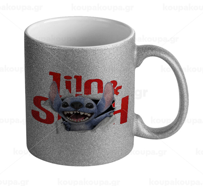 Stitch movie, Κούπα Ασημένια Glitter που γυαλίζει, κεραμική, 330ml
