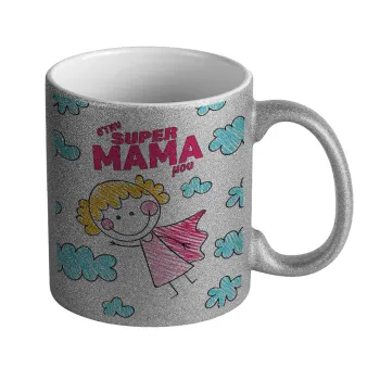 Στην SUPER μαμά μου, comic, Κούπα Ασημένια Glitter που γυαλίζει, κεραμική, 330ml