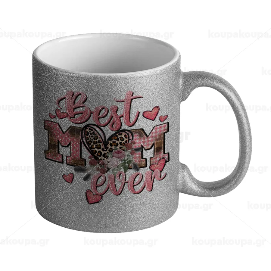 Best mom ever Mother's Day, Κούπα Ασημένια Glitter που γυαλίζει, κεραμική, 330ml