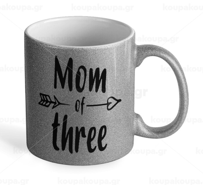 Mom of three, Κούπα Ασημένια Glitter που γυαλίζει, κεραμική, 330ml