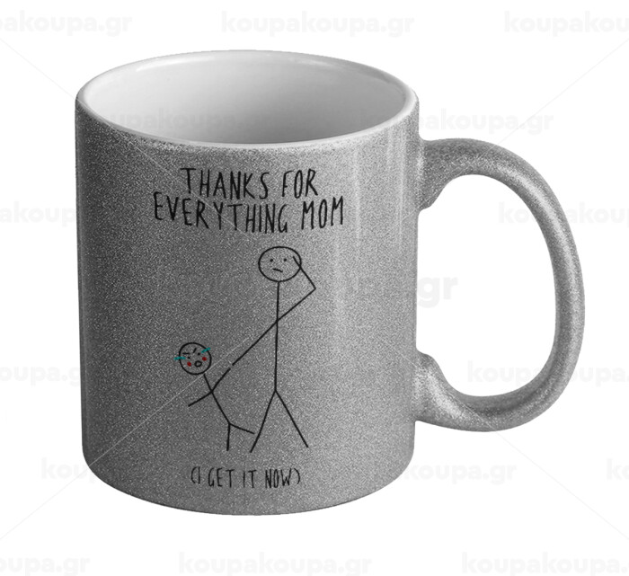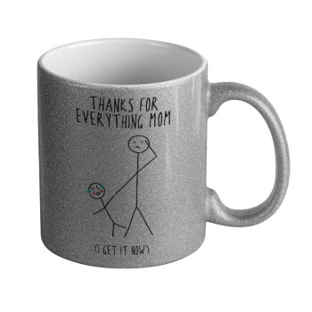 Thanks for everything mom, Κούπα Ασημένια Glitter που γυαλίζει, κεραμική, 330ml