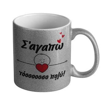 Σ΄αγαπώ τόοοοσο πολύ (Κορίτσι)!!!, Κούπα Ασημένια Glitter που γυαλίζει, κεραμική, 330ml