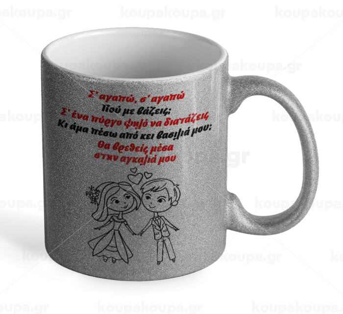 Σ΄ αγαπώ σ΄ αγαπώ που με βάζεις, Κούπα Ασημένια Glitter που γυαλίζει, κεραμική, 330ml