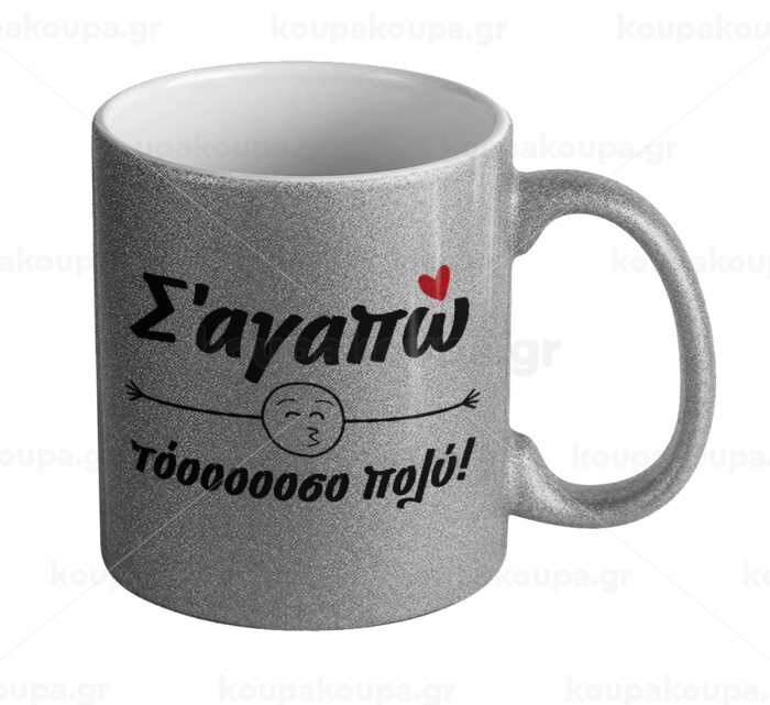 Σ΄ αγαπώ τόοοοοοσο πολύ!!!, Κούπα Ασημένια Glitter που γυαλίζει, κεραμική, 330ml