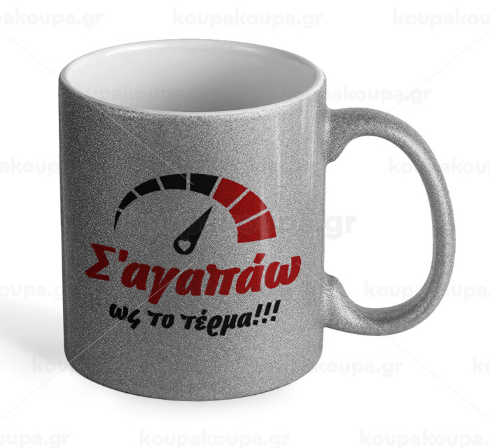Σ΄ αγαπώ ως το τέρμα!!!, Κούπα Ασημένια Glitter που γυαλίζει, κεραμική, 330ml
