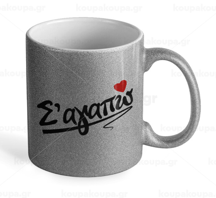 Σ΄ αγαπώ!!!, Κούπα Ασημένια Glitter που γυαλίζει, κεραμική, 330ml