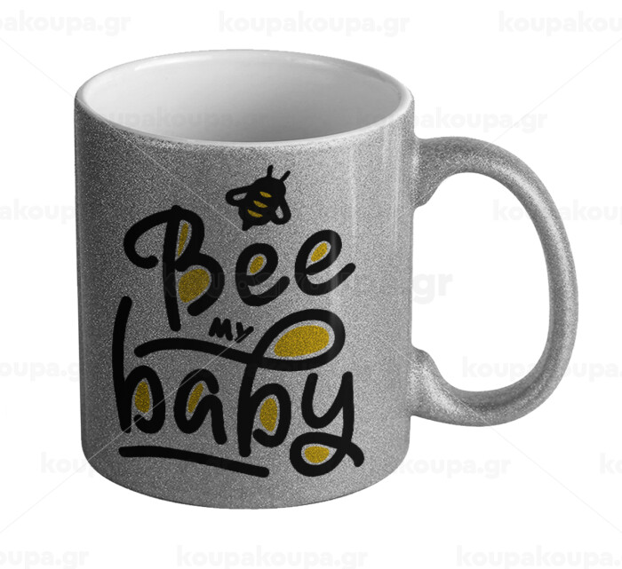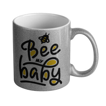 Bee my BABY!!!, Κούπα Ασημένια Glitter που γυαλίζει, κεραμική, 330ml