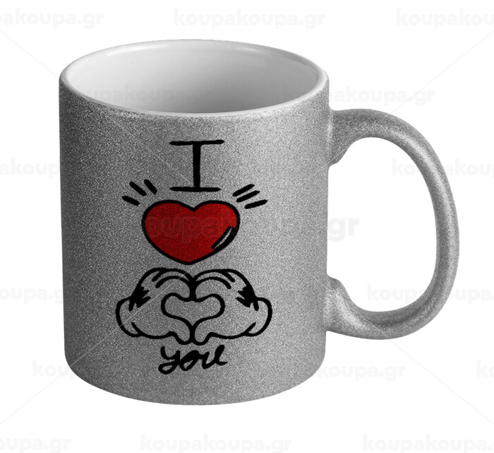 comics hands love, Κούπα Ασημένια Glitter που γυαλίζει, κεραμική, 330ml