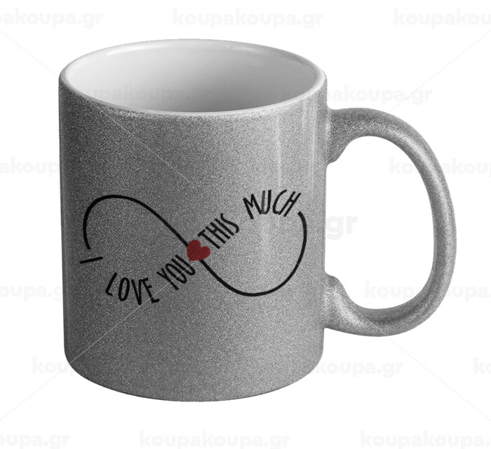 I Love you thisssss much (infinity), Κούπα Ασημένια Glitter που γυαλίζει, κεραμική, 330ml