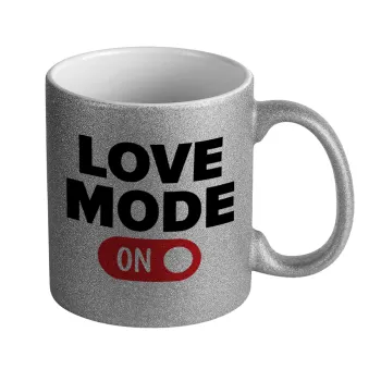 LOVE MODE ON, Κούπα Ασημένια Glitter που γυαλίζει, κεραμική, 330ml