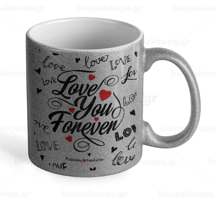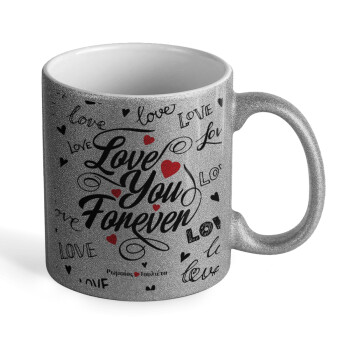 Love You Forever, Κούπα Ασημένια Glitter που γυαλίζει, κεραμική, 330ml