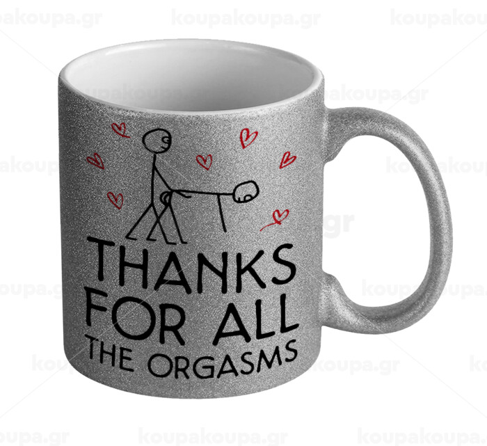 Thanks for all the orgasms, Κούπα Ασημένια Glitter που γυαλίζει, κεραμική, 330ml
