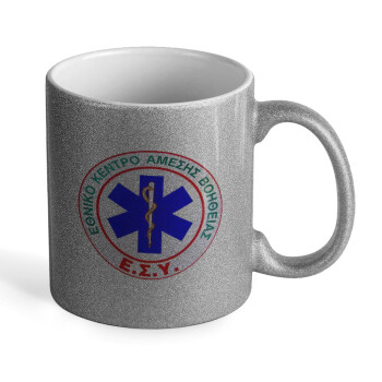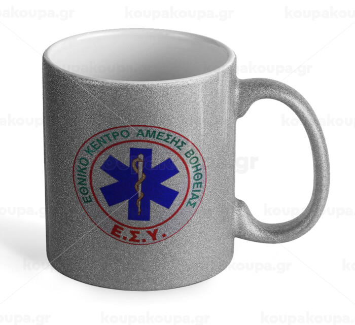 ΕΚΑΒ, Κούπα Ασημένια Glitter που γυαλίζει, κεραμική, 330ml