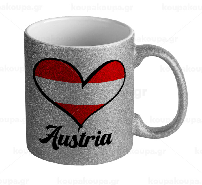 Austria flag, Κούπα Ασημένια Glitter που γυαλίζει, κεραμική, 330ml