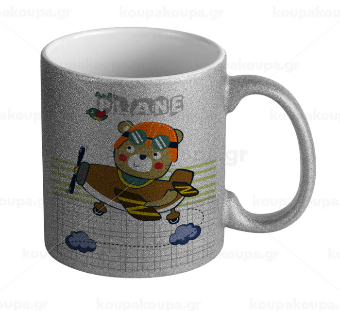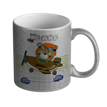 Ο μικρός αεροπόρος, Κούπα Ασημένια Glitter που γυαλίζει, κεραμική, 330ml