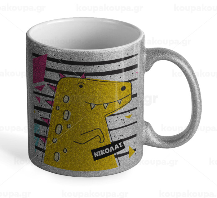 t-rex , Κούπα Ασημένια Glitter που γυαλίζει, κεραμική, 330ml