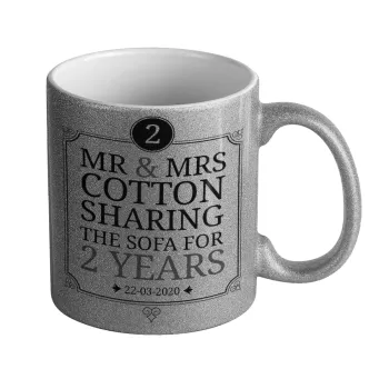 Mr & Mrs Sharing the sofa, Κούπα Ασημένια Glitter που γυαλίζει, κεραμική, 330ml