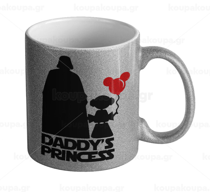 Daddy's princess, Κούπα Ασημένια Glitter που γυαλίζει, κεραμική, 330ml