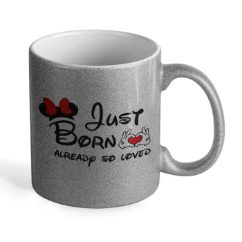 Just born already so loved, Κούπα Ασημένια Glitter που γυαλίζει, κεραμική, 330ml