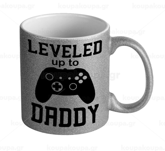 Leveled to Daddy, Κούπα Ασημένια Glitter που γυαλίζει, κεραμική, 330ml