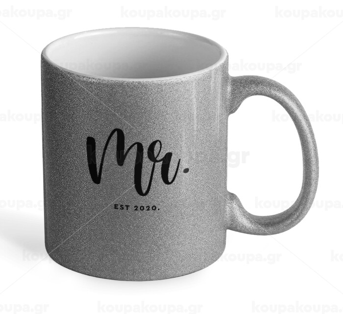Mr & Mrs (Mr), Κούπα Ασημένια Glitter που γυαλίζει, κεραμική, 330ml