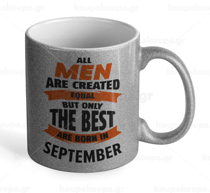 All men are created equal but only the best are born in September, Κούπα Ασημένια Glitter που γυαλίζει, κεραμική, 330ml