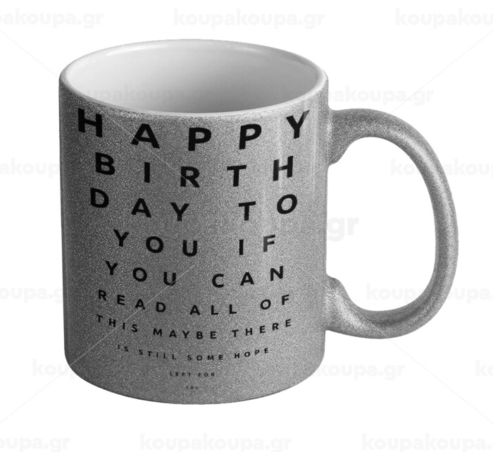 EYE tester happy birthday., Κούπα Ασημένια Glitter που γυαλίζει, κεραμική, 330ml