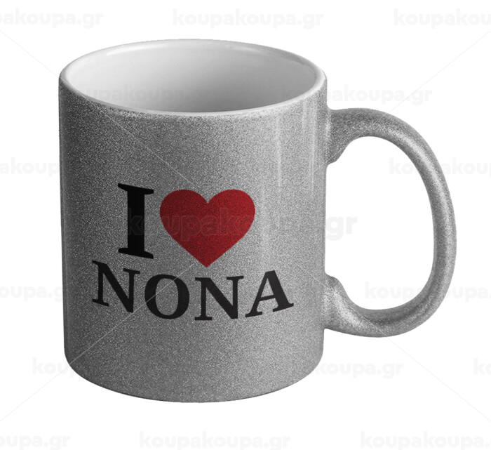 I Love ΝΟΝΑ, Κούπα Ασημένια Glitter που γυαλίζει, κεραμική, 330ml
