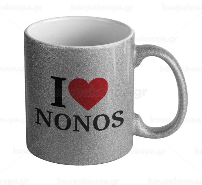 I Love ΝΟΝΟΣ, Κούπα Ασημένια Glitter που γυαλίζει, κεραμική, 330ml